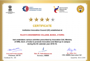 The Institution's Innovation council is awarded with the four stars grading by MHRD for undertaking all the activities prescribed by Innovation cell, MHRD to promote the innovation and start-ups in the campus during the IIC Calendar year 2018-19.