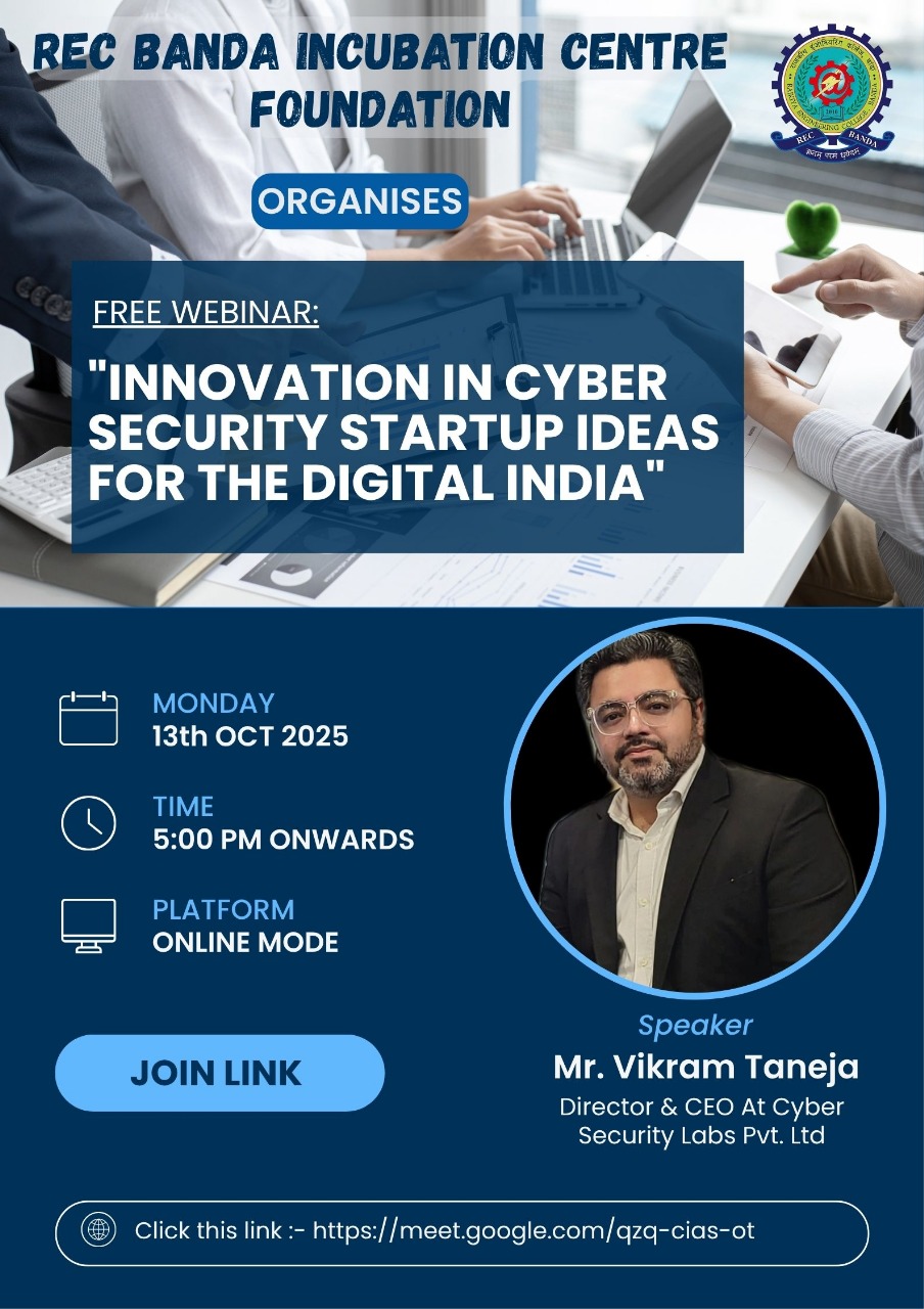 Director & CEO, CyberSRC Labs Pvt. Ltd., organised by the REC Banda Incubation Centre Foundation on 13th October 2025 (Online Mode).