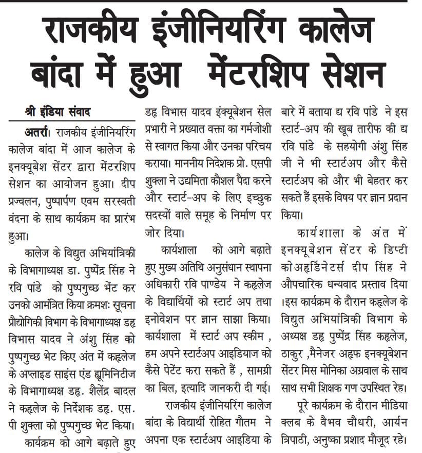 The celebration of National Startup Day organised by the REC Banda Incubation Centre Foundation on 16 Jan 2026 at REC Banda.