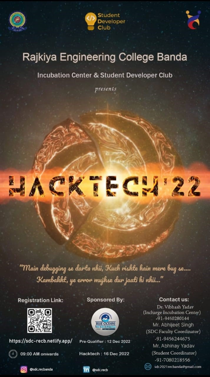 Incubation Centre REC Banda in collaboration with SDC Club REC Banda successfully conducted the Hackathon on 16 Dec 2022