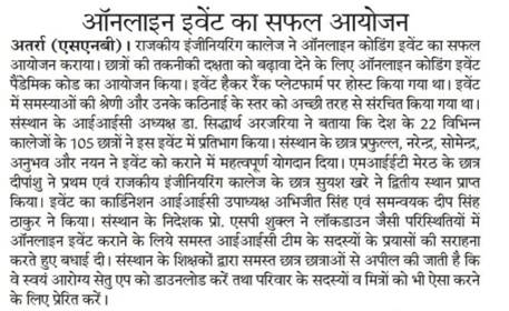 About 105 students from 22 technical institutes across the country participated in the online coding event. Deepanshu Singhal from MIET Meerut won the completion while Suyash Khare from REC Banda and Vishesh Jindal from MIET Meerut became the 1st and the 2nd runner up respectively