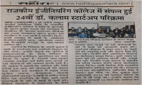 Theme: Ideas for maintaining Social Distancing in college, hostels and classes after COVID-19 and suggestions for fighting against Corona. During Covid-19 Ideathon was an online short, intensive, brainstorming event to help young talents generate fresh solutions to existing challenges. 56 teams have registered and submitted their ideas for this event. Top 10 ideas were selected for second round which was held on 11 June 2020. The Chief Judge was Mr. Ashish Kanaujiya External Member I Create Gujarat and Mr. Saubhagaya KIET Gaziabad. Kaushal Sharma of MGMCET Noida secured First position for his idea of 'Distance maintaining watch', Uttam Sharma of HBTU Kanpur secured second position for his idea of 'Low cost foot operated hand dispensing system' and Akshita Gupta of PSIT Kanpur secured third position for her idea on 'An app for tracking suspected people'.