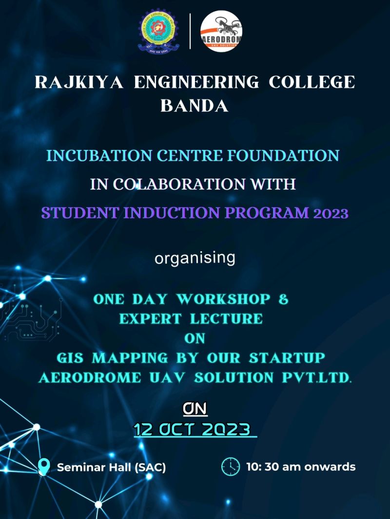 One day workshop on GIS Mapping by our Incubated Startup Aerodrome UAV Solutions Pvt.Ltd." organized by "REC Banda Incubation Centre Foundation" on 12 Oct.2023.