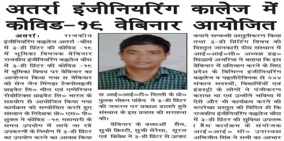 It was successfully conducted in collaboration with Shenzhen Mingda Technology Co. Ltd, China and Empyrean Robotics Technology Pvt. Ltd, India. Speakers of webinar Mr. Sam, Ms. Christy Lv, Ms. Theresa Guo, Mr. Suraj Yadav and Mr. Shivesh Gaur elaborated about the Utility, Importance and Significance of 3D Printer and its product and also showed the Demo of Printer and its production work.